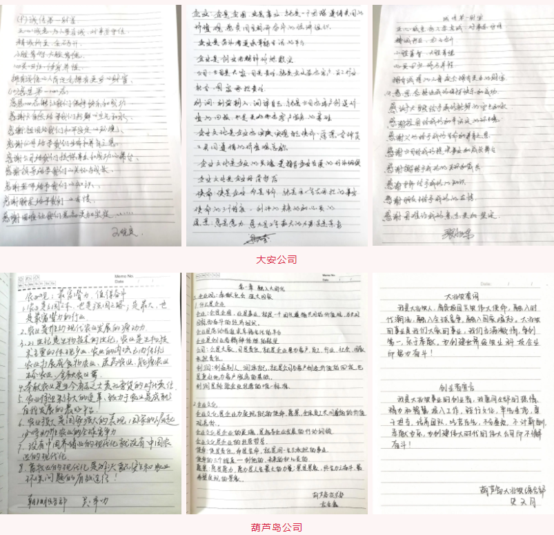 創(chuàng)業(yè)者們深深知道,對于大北農(nóng)這支英雄戰(zhàn)隊來說,企業(yè)文化就是我們的軍魂,它是鮮活的存在,是發(fā)展的根基。獨具特色的文化使我們的靈魂更加飽滿,行動更具力量!因此,大家都愿投入于本次活動中,切實做到每日一寫,每日一學,每日一思!